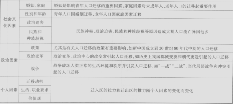(3)政治因素:在特殊时期可能引起大规模的人口迁移。例如,我国实行西部大开发战略,吸引东部部分人口到西部地区工作;海湾战争期间,大量伊拉克居民迁往其他国家。