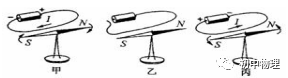 对比甲图、丙图,可以说明:磁场的方向跟电流的方向有关。
