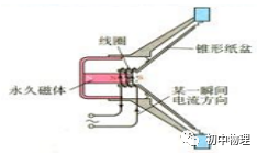 扬声器的工作原理:线圈通过如图下所示电流时,受到磁体吸引而向左运动;当线圈通过方向相反的电流时,受到磁体排斥而向右运动。由于通过线圈的电流是交变电流,它的方向不断变化,线圈就不断地来回振动,带动纸盆也来回振动,于是扬声器就发出了声音。