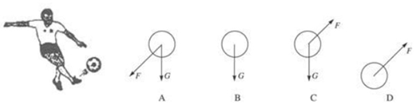 3、足球运动员把足球踢向空中,若不计空气阻力。下图是表示足球在空中飞行的受力图,正确的是( G表示重力, F表示脚对球的作用力)( )