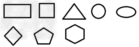 从左到右依次为:长方形、正方形、三角形、圆、椭圆、