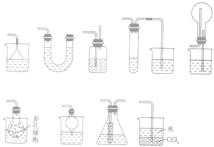 (1)防倒吸装置:在水中溶解性很大的气体(如HCl,NH3等),特别要注意防倒吸(如下图所示)