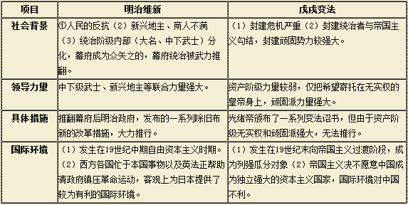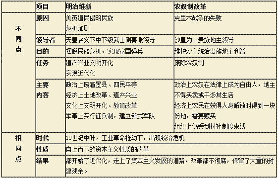 (2)结果相同:都促进了资本主义发展,进一步扩大了市场,两国均在改革后强盛起来,同时,都保留了一定的残余。