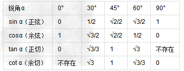 解直角三角形的函数值列举:
