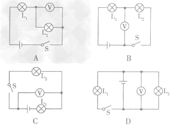解析:去掉电源后,会发现A、B、C中电压表均与L2构成回路;D中电压表与L1、L2均构成回路。