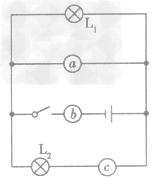解析:在a、b、c三处分别换上一根导线,则在a处灯泡L1发生短路,所以a应为电压表,b、c处电路未出现短路,所以b、c处为电流表。