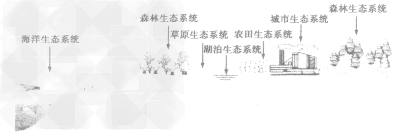 地球上存在着多种多样的生态系统,生物圈是地球上最大的生态系统。如图1?22?3所示,在生物圈中又可以分出很多小的生态系统,如一片森林、一块草地、一块农田、一个池塘、一条河流等,即生态系统的多样性。