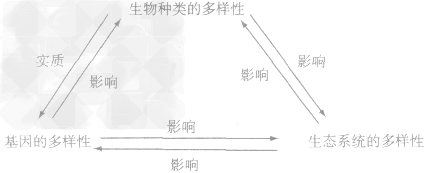生物的性状特征是由基因控制的,生物的细胞内有成千上万个基因。不同物种的生物基因有较大差别,同种生物不同个体之间基因也有差异。因此,基因的多样性可分为种间基因的多样性和种内基因的多样性。每种生物都是一个丰富的基因库。生物种类的多样性实质上是基因的多样性,可概括为: