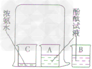 | 实验解释 | 烧杯中的浓氨水挥发出氛分子,氨分了进人烧杯A中,使溶液变成红色.而烧杯B中没有氨分子进入 | ||
