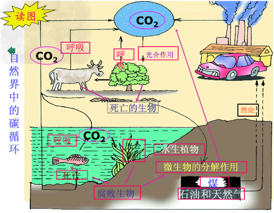 物碳酸盐中(如碳酸钙)。储存库里的碳,一般情况下是不参加碳循环的,除非岩
