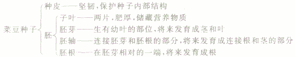 | 菜豆种子 | 有种皮和(胚) | 子叶(两)片,没有(胚乳) |