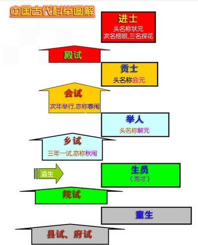 唐朝的进士科最受重视。“缙绅虽位极人臣,不由进士者,终不为美。”不过,进士的录取率仅有百分之一二,所以当时有“三十岁老明经,五十岁少进士”的谚语。那时的考试条件很差,进士、明经的考场设在贡院的东西两廊,时间往往是正月、二月,长安的天气很冷,常常遇到雪天,唐诗有“密雪分天路,群才坐粉廊”的描述。但是实际只是在屋檐下席地而坐,还要答卷子,滋味和不好的;后代王朝虽然改善了考场,不过条件依然很艰巨。