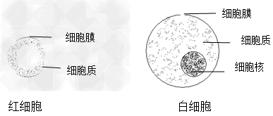 分别绘出一个红细胞和白细胞的结构镜像图。