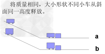 将质量不同小车从斜面同一高度释放(如图)