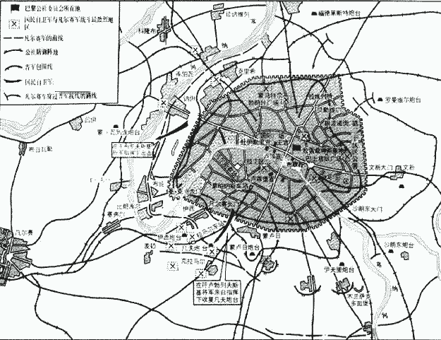 巴黎公社是1871年3月18日—5月28的暂时管理巴黎的无产阶级政府。普法战争失败后,拿破仑三世投降,割让阿尔萨斯和洛林地区给普鲁士,与此同时巴黎宣布建立第三共和国,普鲁士不满于即得利益,继续炮轰巴黎,而新政府无意阻止反抗。这样,激化了社会各界,特别是工人阶级和中下层中产阶级的同资产阶级共合派的矛盾,1871年3月18日,于蒙马特尔高地起义,迅速占领巴黎,建立巴黎公社,成立世界上第一个无产阶级政权。但最终于5月28日被反动政府残酷镇压。