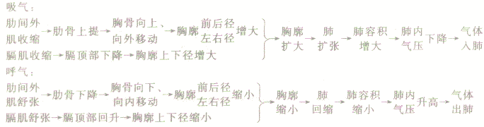 呼吸运动的过程以流程图的形式可简化表示如下: