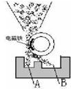 3. 电磁选矿机:电磁选矿机是根据磁体对铁矿石有吸引力的原理制成的。当电磁选矿机工作时,铁砂将落入B箱。矿石在下落过程中,经过电磁铁时,非铁矿石不能被电磁铁吸引,由于重力的作用直接落入A箱;而铁矿石能被电磁铁吸引,吸附在滚筒上并随滚筒一起转动,到B箱上方时电磁铁对矿石的吸引力已非常微小,所以矿石由于重力的作用而落入B箱。
