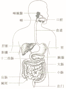 (1)口腔:口腔是消化道的开始部位,里面有牙齿、舌和唾液腺。牙齿的主要功能是切断、撕裂和磨碎食物,牙齿损伤以后,食物就不能得到充分的咀嚼,因而会加重胃、肠的负担。