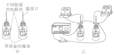 猜想C:电流做功可能与通电时间有关。为了验证自己的猜想,他选择了如图甲所示的装置(除电阻丝阻值不同外,其余条件均相同)及电源、开关、电压表、导线若干。他将两电阻丝串联后接入电路,如图乙所示。