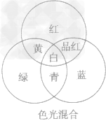 如图所示,适当的红光和绿光能合成黄光;适当的绿光和蓝光能合成青光;适当的蓝光和红光能合成品红色的光;而适当的红、绿、蓝三色光能合成白光。因此红、绿、蓝三种色光被称为色光的“三原色。”