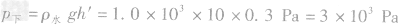 解析:边长为10cm的正方体的一个面的面积为S =0.01m2,上表面距水面的距离:h=0.3m—0.lm=0.2m。上表面受到的压强为: