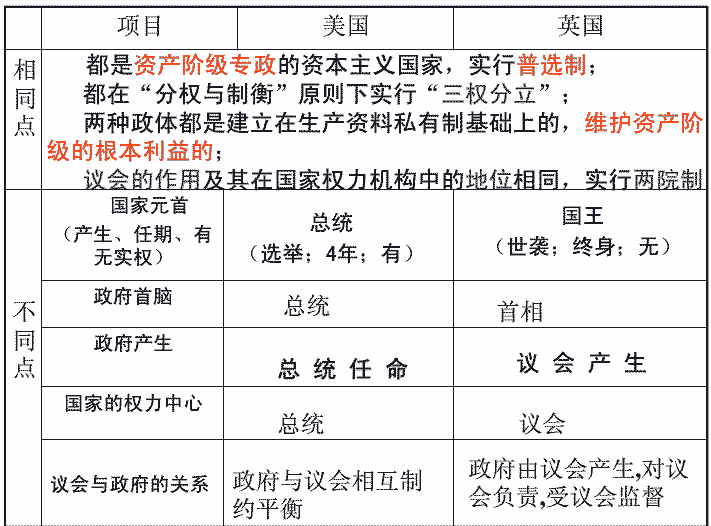 (4)解决政体问题不同:英国采用君主立宪;法国采用民主共和制。