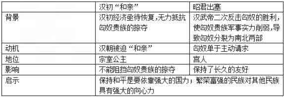 对比汉初“和亲”政策与昭君出塞并且得出的启示: