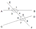 直线AB,CD与EF相交(或者说两条直线AB,CD被第三条直线EF所截),构成八个角。