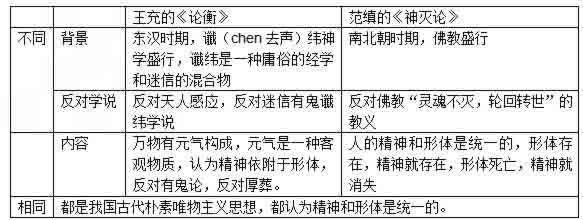 (2)提出了精神是活人的“质”所特有的,只有活人的形体才有精神作用。《神灭论》鲜明的唯物主义倾向,尖锐的批驳了佛教的形神分离、形亡神不灭的观点。