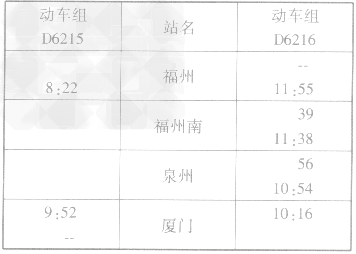 (1)D6215动车组从福州直达厦门的运行时间是多少?其平均速度是多少?