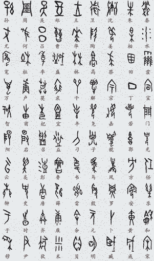 甲骨文:主要指中国商朝晚期(前14~前11世纪)王室用于占卜或者记事在龟甲或是兽骨契刻的文字,是中国已知最早的成体系的文字形式,今天的汉字也与甲骨文有渊源关系。