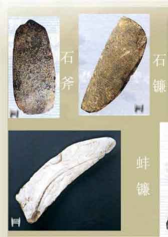 农具:绝大部分是木、石、骨、蚌制工具,青铜工具极少。