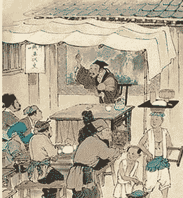 茶坊、酒肆不仅是士大夫聚朋交友的地方,同时往往还有说书、评话、讲史、小唱……所以茶坊酒肆也是市民娱乐、休憩和消遣的场所。酒肆茶坊里聚集了市民阶层中三教九流的人物,各种市民关心的话题消息在其中流传,这里成为观察市民的各个层次的万花筒,反映着市民的众生相。酒肆茶坊的兴起就说明市民的消闲意识和文化趋同的意识的出现。