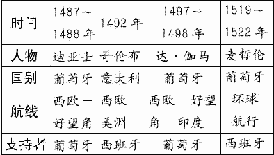 2.中国指南针及航海术的广泛应用,历史上的西葡两国.航海知识和技术比较发达,聚集了相当多的航海人才并且具有冒险意识的航海家;