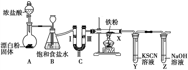 (4)①X中生成的FeCl3受热气化,进入试管Y中,Y中溶液变为血红色。试管Z中NaOH溶液的作用是吸收氯气尾气,防止污染大气,离子方程式为:Cl2+2OH-ClO-+ Cl-+H2O。