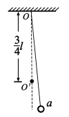 (1)(5分)如图,长为l的细绳下方悬挂一小球a。绳的另一端固定在天花板上O点处,在O点正下方3/4lL的0·处有一固定细铁钉。将小球向右拉开,使细绳与竖直方向成一小角度(约为2°)后由静止释放,并从释放时开始计时。当小球a摆至最低位置时,细绳会受到铁钉的阻挡。设小球相对于其平衡位置的水平位移为x,向右为正。下列图像中,能描述小球在开始一个周期内的x-t关系的是_____。