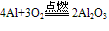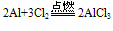 | 与非金属反应 | 2Mg+O2=(点燃)=2MgO (发出耀眼白光) Mg+Cl2=(点燃)=MgCl2 3Mg+N2=(点燃)=Mg3N2 | 4Al+3O2=(加热)=2Al2O3 2Al+3Cl2=(加热)=2AlCl3 2Al+3S=(加热)=Al2S3 |