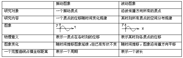 波动图像与振动图像的比较: