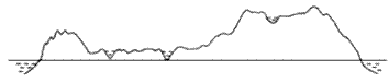 在等高线地形图中,如果沿不同方向对鞍部作剖面图,可得到两种完全不同的地形剖面图。沿两座山峰连线方向看,两边高,中间低;