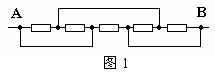 例:由5个1Ω电阻连成的如图1所示的电路,导线的电阻不计,则A、B间的等效电阻为________Ω。