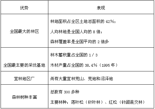 (3)森林资源优势