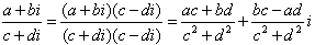 3、复数的乘法运算规则:设z1=a+bi,z2=c+di(a、b、c、d∈R)是任意两个复数,那么它们的积(a+bi)(c+di)=(ac-bd)+(bc+ad)i,其实就是把两个复数相乘,类似两个多项式相乘,在所得的结果中把i2换成-1,并且把实部与虚部分别合并,两个复数的积仍然是一个复数。