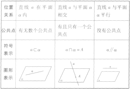 直线和平面的位置关系符号表示及相应的图形见下表: