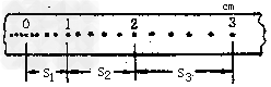 2、由纸带判断物体做匀变速直线运动的方法:如图所示,0、1、2……为时间间隔相等的各计数点,s1、s2、s3、……为相邻两计数点间的距离,若△s=s2-s1=s3-s2=……=恒量,即若连续相等的时间间隔内的位移之差为恒量,则与纸带相连的物体的运动为匀变速直线运动。