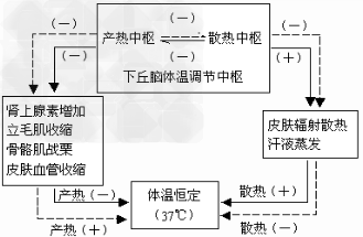 (1)产热途径:以骨骼肌和肝脏产热为主。皮肤毛细血管的散热