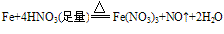 铁过量时:3Fe+8HNO3==3Fe(NO3)2+2NO+4H2O