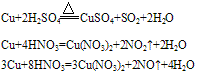 ②铜与酸反应:铜只能被氧化性酸中的中心元素氧化。例如: