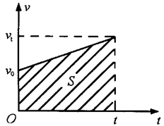 如图是某物体做匀变速直线运动的图象.根据图象的物理意义,它与横轴(时间轴)所围的那块梯形面积表示运动的位移.所以: