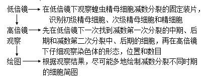 蝗虫的精母细胞进行减数分裂形成精细胞,再形成精子。此过程要经过两次连续的细胞分裂:减数第一次分裂和减数第二次分裂。在此过程中,细胞中的染色体形态、位置和数目都在不断地发生变化,因而可据此识别减数分裂的各个时期。