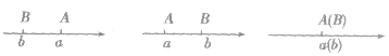 在数轴上不同的点A与点B分别表示两个不同的实数a与b,右边的点表示的数比左边的点表示的数大,从实数减法在数轴上的表示可以看出a、b之间具有以下性质:如图,如果a-b是正数,那么a>b;如果a-b是负数,那么a<b;如果a-b等于零,那么a=b,反之也成立,从而a-b>0等价于a>b;a-b=0等价于a=b;a-b<0等价于a<b.
